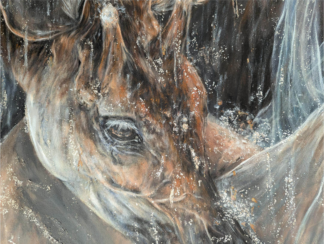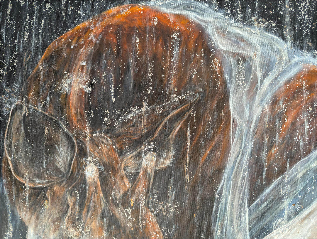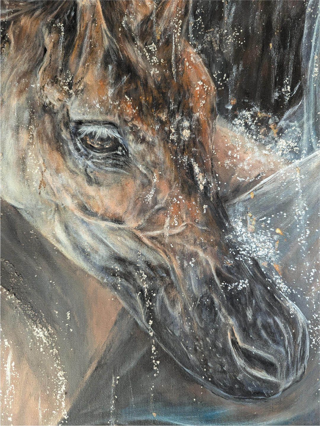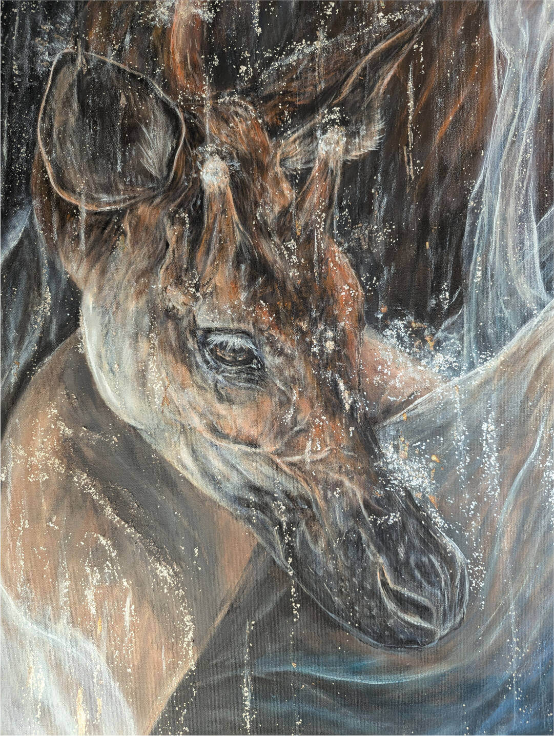 Acryl auf Leinwand, Mixed Media (Perlmuttglimmerflocken)