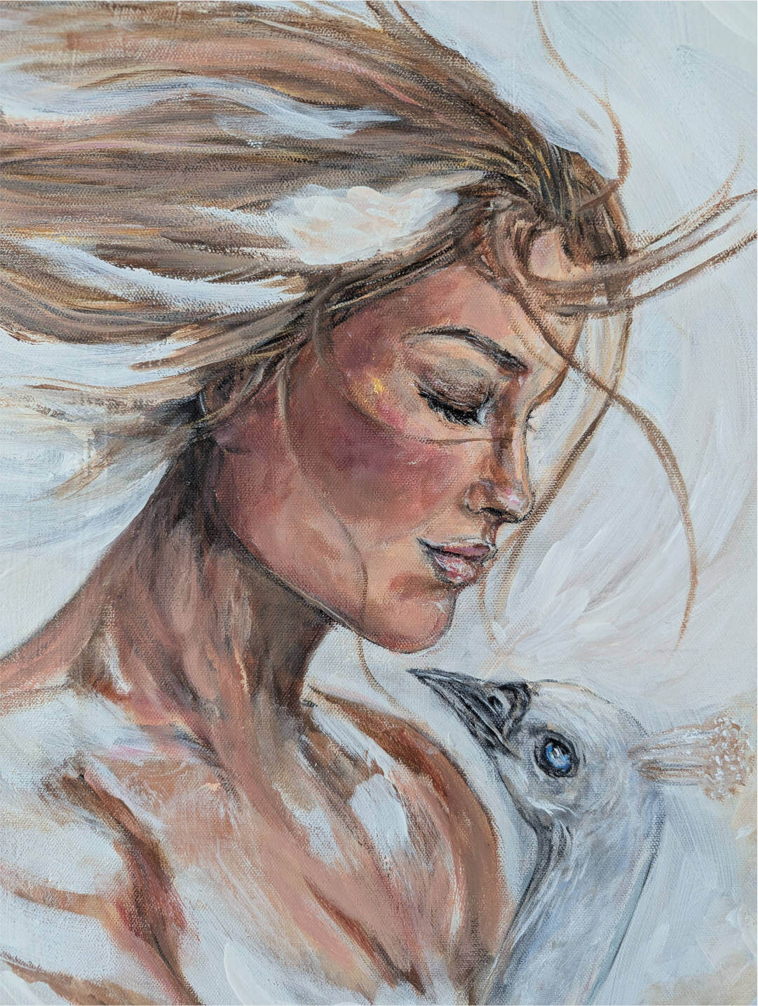 Der weiße Pfau steht hier für Reinheit und Erneuerung. Er zeigt, dass alle gelernten Lektionen und die damit gewonnene Stärke nicht vergänglich sind, sondern mit jedem Schritt, den wir gehen, tiefer in uns verwurzelt werden.