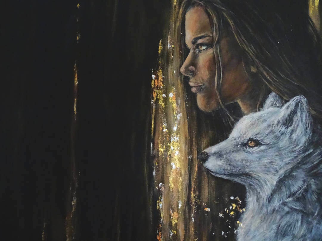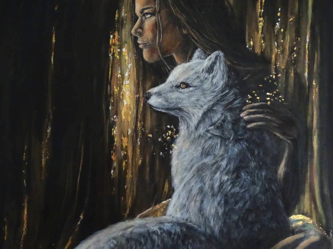 Unspoken zeigt die stille und unausgesprochene Verbindung, die keine Worte braucht. Frau und Polarfuchs blicken gemeinsam in die Zukunft – entschlossen, aufmerksam und voller Zuversicht.